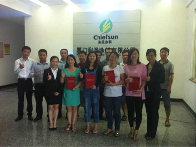 廈門彩圣涂料有限公司,就涂料行業(yè)的現(xiàn)狀,發(fā)展及在各領(lǐng)域的應(yīng)用進(jìn)行座談。會(huì)議在董事長(zhǎng)劉炳林先生的帶領(lǐng)下愉快進(jìn)行。 |